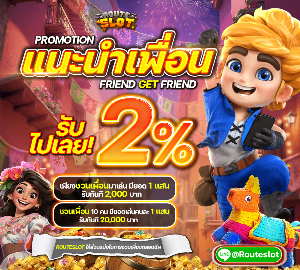 แนะนำเพื่อน ROUTESLOT รับฟรี 2%